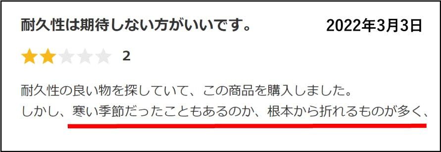 そのため、冬~春先の乾燥期は耐久力が落ちてしまい羽が折れやすくなるとのお声をいただきました。