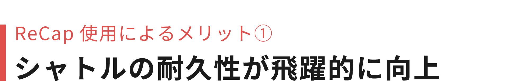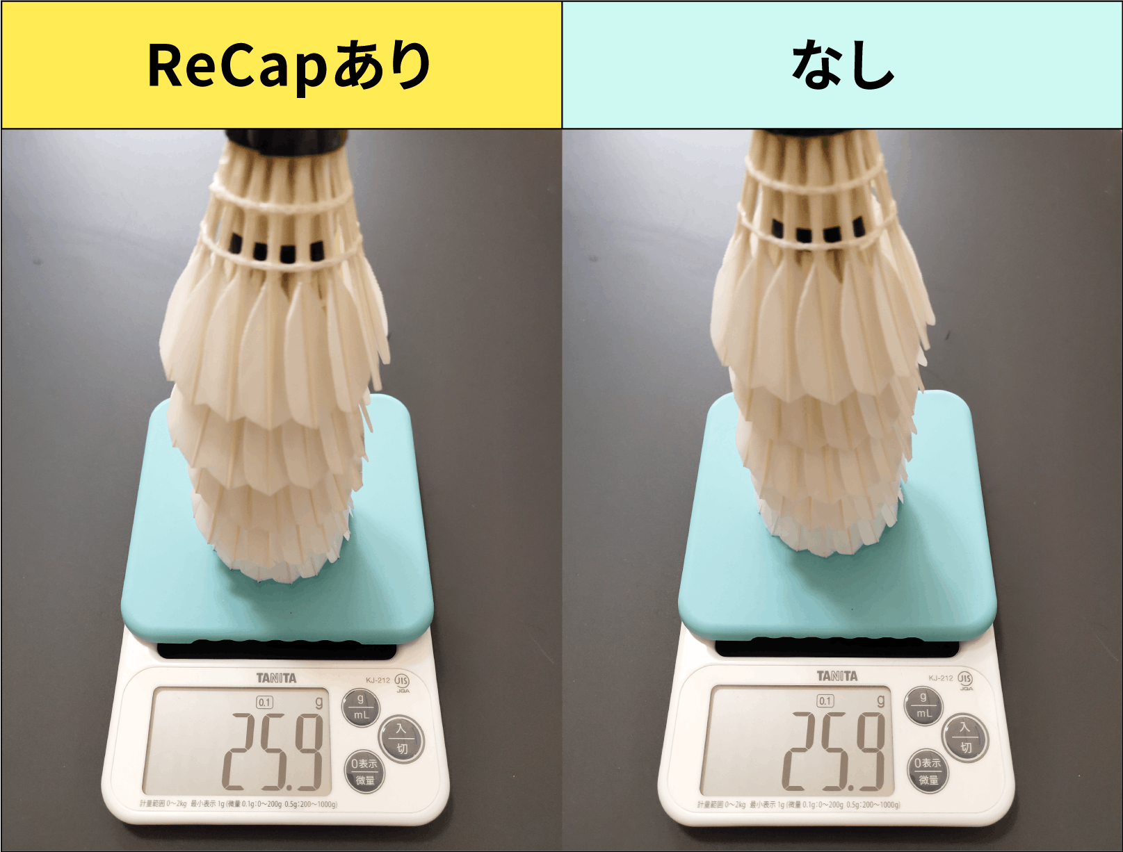 予めご理解いただきたいのが、ReCapを装着したシャトル全てが全く壊れなくなるということではありません。壊れる速度が緩やかになり、ポキっと1枚折れが大幅に軽減され、壊れ方が綺麗になるイメージです。