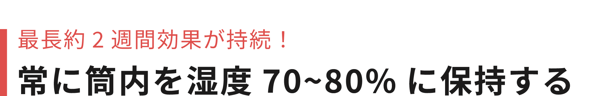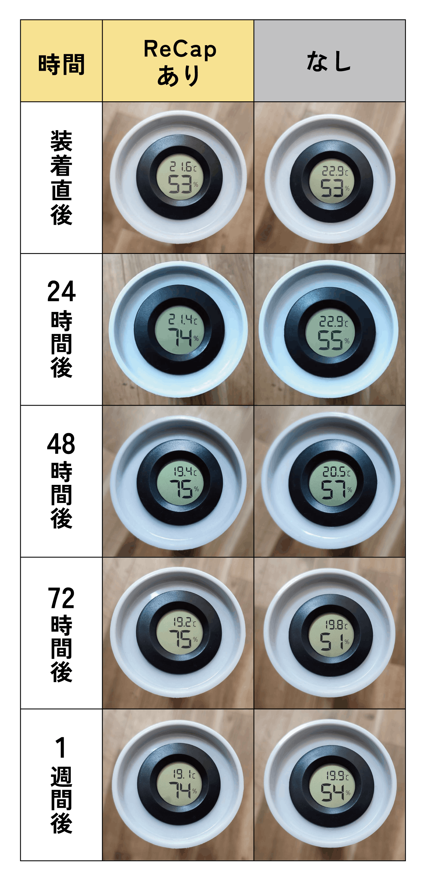 ReCapには、常に筒内の湿度を一定に保持し続けるという効果があります。そしてその効果は最大約2週間持続します。