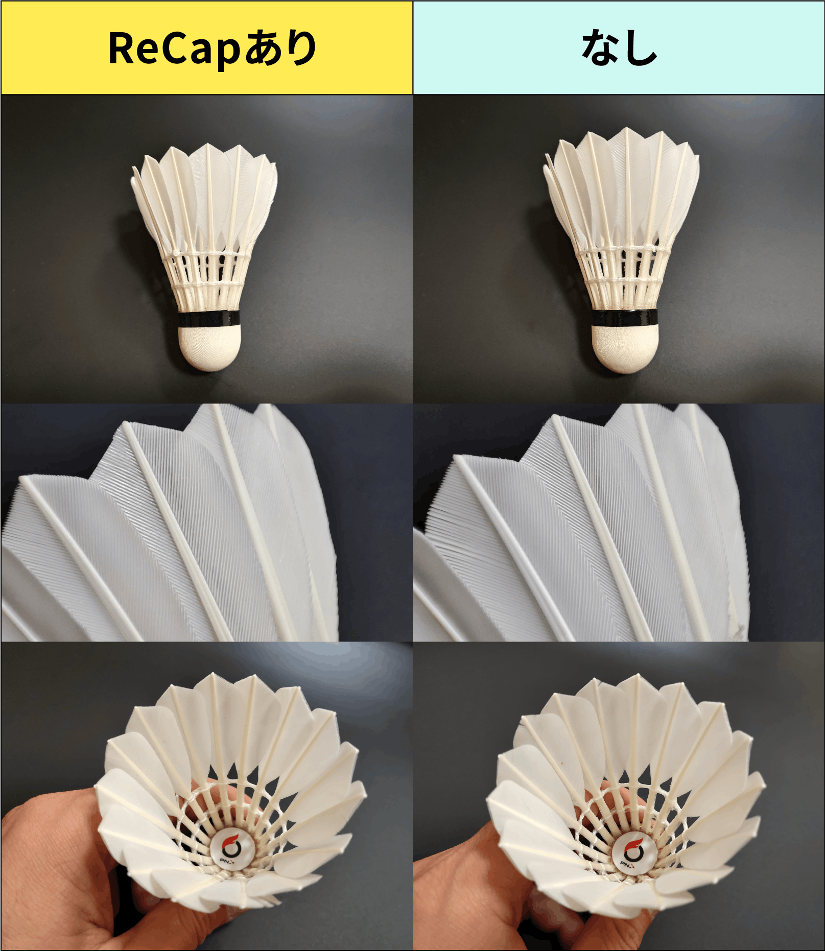 しかし、ReCapで加湿をしたシャトルは大きく異なります。