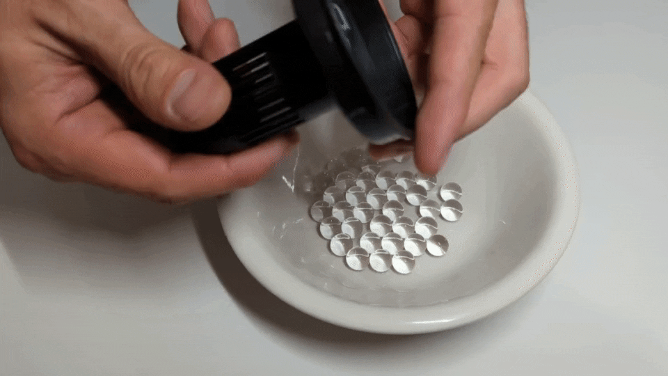 吸水させたビーズ玉を分離した上蓋と底蓋に5個ずつ入れ、蓋を完成させます。