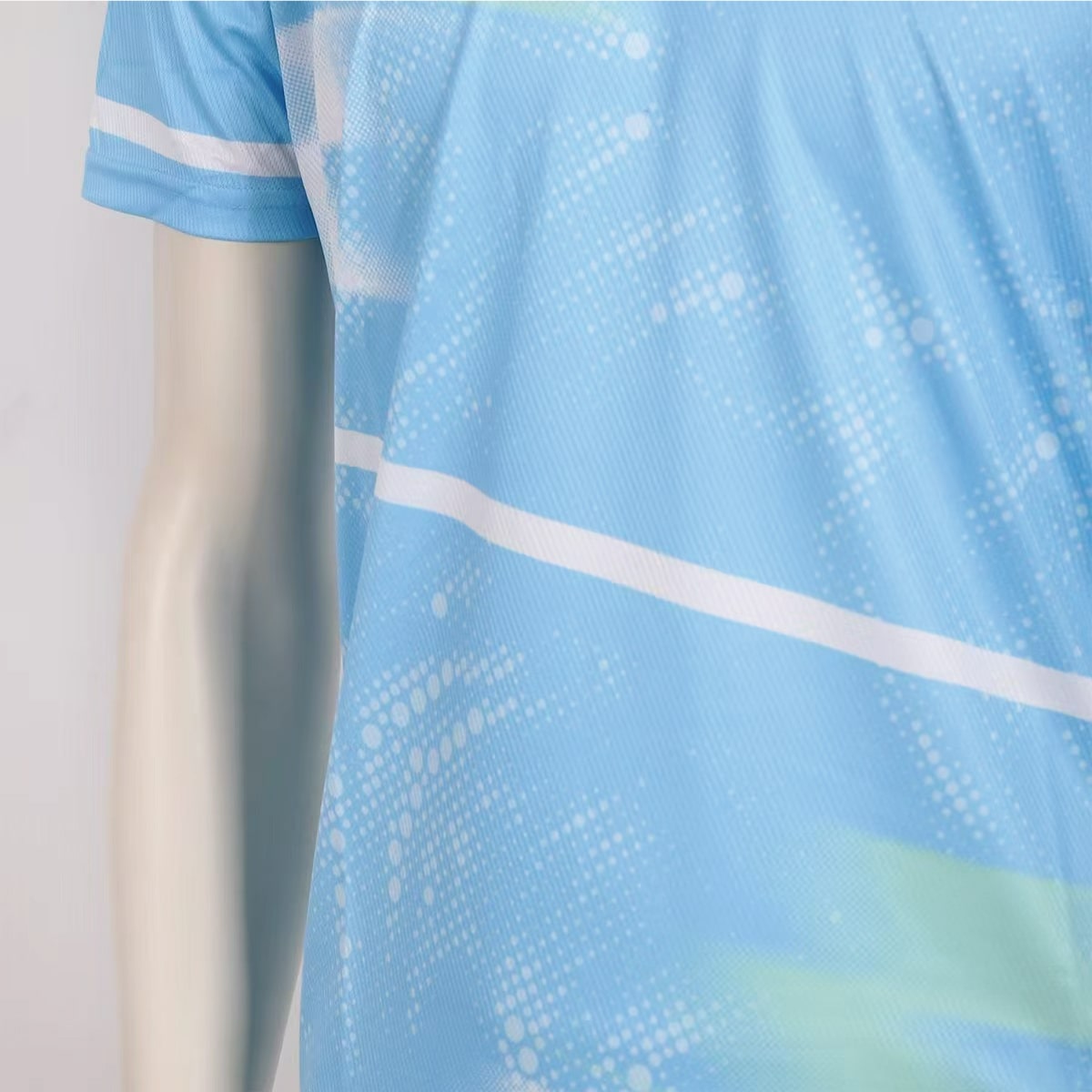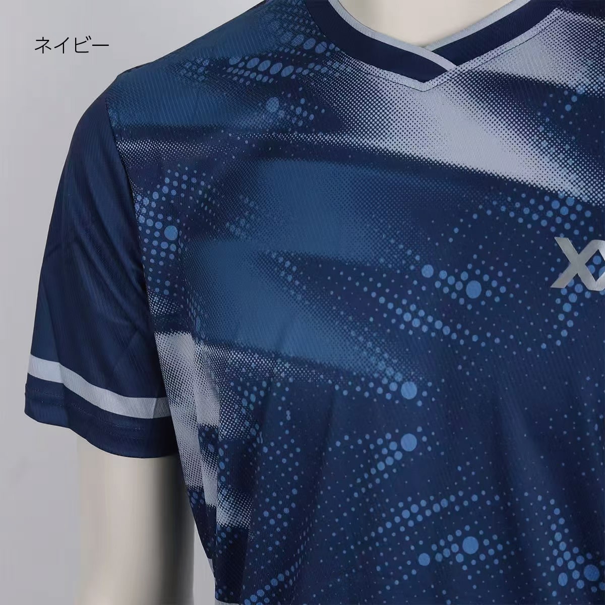 本シャツは、日本バドミントン協会の認定を受けた公式ゲームシャツであり、公式試合にも安心してご使用いただけます。デザイン面では、ボディーにライン柄が施された、存在感のある一着です。カラーバリエーションはライトブルー、ホワイト、ネイビーの3色をご用意しております。