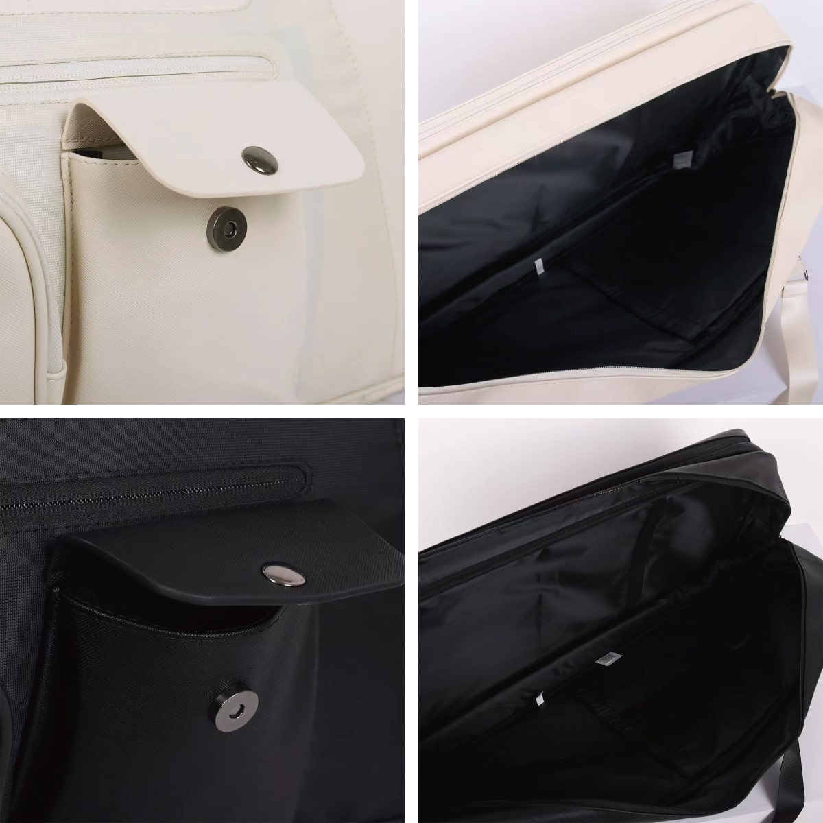 外側には独立した小物収納ポケットを配置。ファスナー付きポケットに加え、すぐに取り出せる便利なマグネット式ポケットも備えているため、バッグの中を探す手間が省けます。